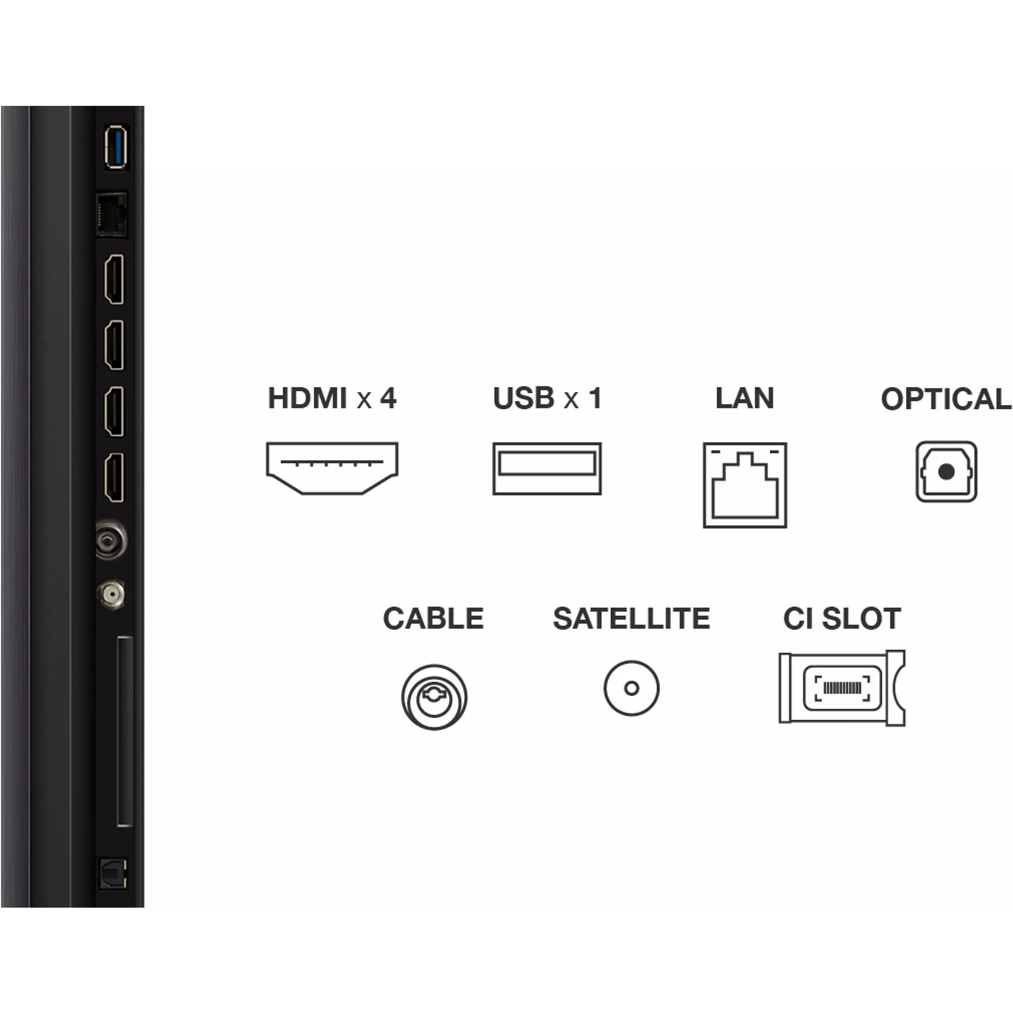 • Système Smart TV : connectivité complète (HDMI 2.1 ×4, USB, Wi-Fi, etc.) pour consoles, streaming et home-cinéma.