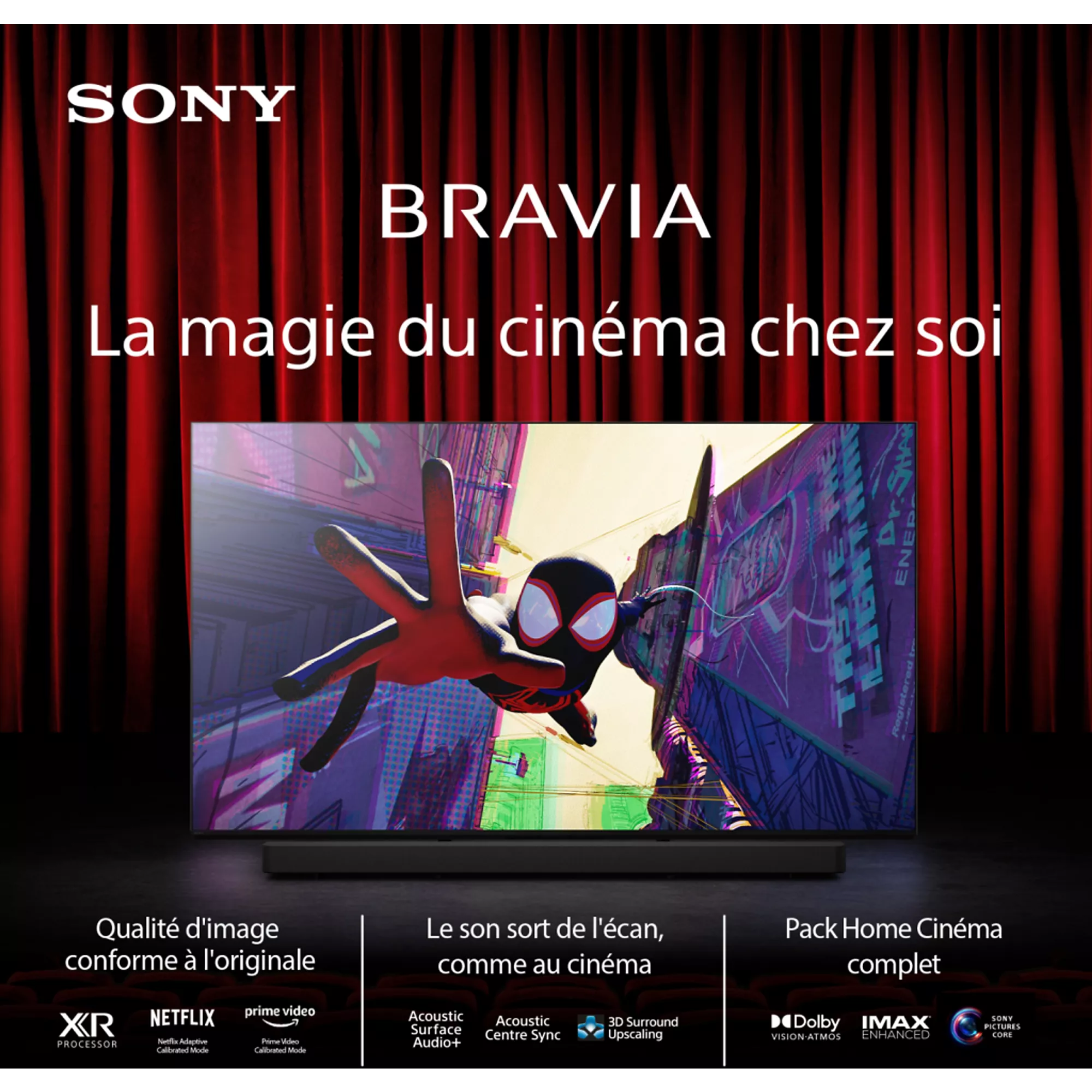- Son immersif via Acoustic Surface : le son suit l’image, pour une immersion totale.